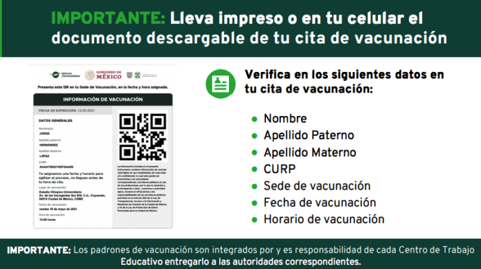 En tanto, el 1 de mayo se habilitó un sitio web para que los trabajadores de la educación se encontraran en los listados que enviaron la Secretaría de Educación Pública (SEP) y la Secretaría de Educación, Ciencia, Tecnología e Innovación (Sectei) a todos los planteles. Sin embargo, precisó que las personas que no se hayan inscrito lo podrán hacer entre el 18 y el 22 de mayo.