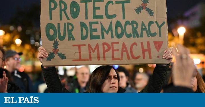 Gritos y carteles a favor de la destitución del presidente Donald Trump recorrieron este martes por la noche todo Estados Unidos de costa a costa, en la víspera de la histórica votación en la Cámara de Representantes para aprobar los cargos contra el presidente. Una amalgama de organizaciones convocó más de 600 pequeñas concentraciones en todo el país bajo el lema Impeach & Remove (impugnar y quitar) para celebrar lo que consideran una victoria de la democracia.