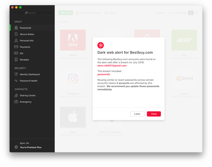 Los administradores de contraseñas como Dashlane son hoy en día menos una opción “agradable de tener”, y más de un “deber” ya que las violaciones de datos y medidas de seguridad adicionales, como las contraseñas complejas combinadas con 2FA, se han convertido en una rutina. Es mucho para un usuario medio de la red mantenerse al día, y las soluciones nativas como el llavero de Apple no son lo suficientemente frecuentes. Por eso es útil tener un programa que ayude a automatizar los cambios de contraseña, rastrear cuentas comprometidas, identificar contraseñas débiles y más.