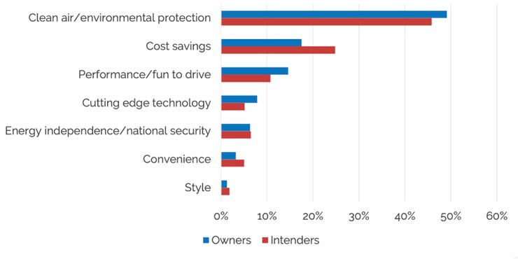 Un estudio de Enchufe América descubrió que los conductores que ingresan al mundo de los vehículos eléctricos por primera vez, así como los que han estado allí por un tiempo, tienen diferentes prioridades cuando se trata de por qué compran un vehículo eléctrico. Aquellos interesados en comprar un EV hoy están menos motivados por el medio ambiente y más interesados en ahorrar costos que los propietarios de EV existentes. Como lo señaló Informes de coches ecológicos, la encuesta incluyó a 8.000 encuestados de EE. UU. y se realizó antes de la guerra entre Rusia y Ucrania, y desde entonces el aumento de los precios de la gasolina ha provocado un aumento en el interés por los vehículos eléctricos.