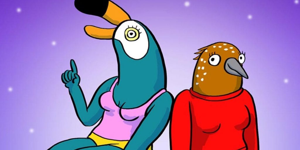 En Tuca y Bertie, Tiffany Haddish y Ali Wong retratan a las mujeres aves titulares, respectivamente, y Los muertos caminantes Steven Yeun co-protagoniza como el novio arquitecto de Bertie, Speckle. Con su comedia vanguardista y su premisa surrealista, la comedia de Netflix resonó con muchos suscriptores, al igual que la comedia animada para adultos de Netflix Boca grande. Tuca & Bertie's El creador, Hanawalt, trabajó anteriormente para BoJack Horseman, La primera comedia animada original de Netflix que marcó la pauta para futuras series. A pesar de Tuca & Bertie's aclamación crítica, sin embargo, Netflix decidió desconectar. Hanawalt expresó su gratitud por la oportunidad y, al hablar de su enfoque creativo, señaló que "Nada de esto hace una diferencia en un algoritmo, pero es importante para mí y para la forma en que quiero seguir haciendo arte en este mundo".