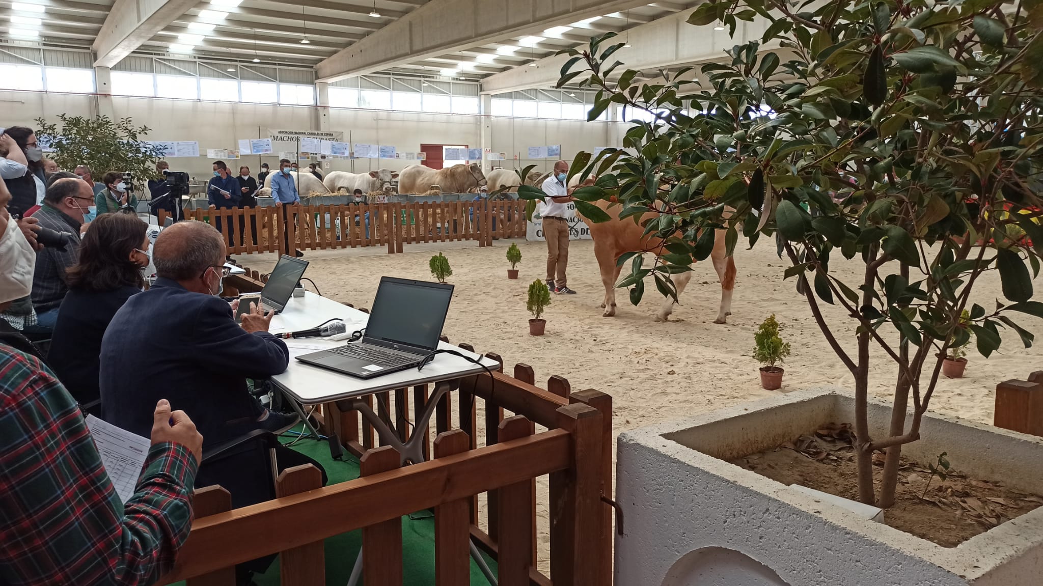 A la hora de comienzo de la puja, al mediodía del sábado 10, una nota en la pantalla avisaba de problemas “técnicos” y así transcurrieron unos 30 minutos. Pero lo que retrasaba el inicio de la subasta de ganado selecto, “los ferraris de las vacas”, no era la falta de señal sino la avalancha de nuevos pujadores que querían apuntarse a última hora, cuando el plazo había expirado el viernes. Era preciso comprobar que todos los candidatos eran auténticos ganaderos, y al final consiguieron “tarjeta virtual” para participar 65 profesionales. En vez de levantarla desde el público, como es costumbre, debían hacer clic en un botón que se les habilitaba en la pantalla de su ordenador, su tableta o su móvil.