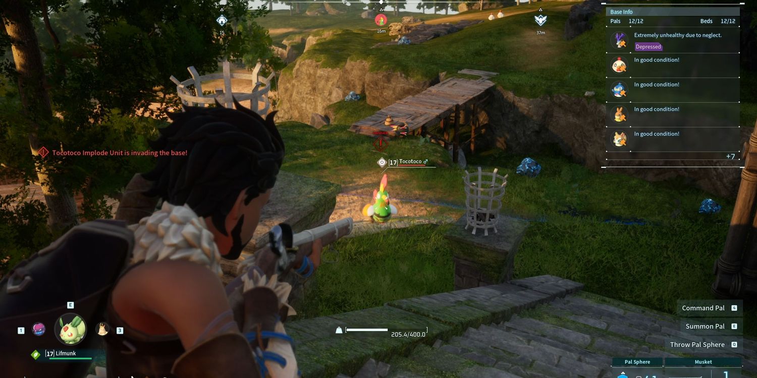 Cuando son atacados por Tocotocos, es fácil asumir que las únicas opciones son derrotarlos o capturarlos rápidamente o simplemente escapar del radio de explosión. Sin embargo, al tener en cuenta esta peculiaridad del temporizador de explosión, derrotarlos se vuelve mucho más fácil. Por supuesto, si son atacados por varios a la vez, evitar que todos exploten puede ser difícil, pero derribarlos a distancia ayudará a mitigar la fuerza numérica de estos amigos. Los tocotocos son sólo uno de muchos mundo pal Criaturas que se vuelven más fáciles de manejar con la estrategia adecuada, haciendo que un encuentro potencialmente estresante sea mucho más divertido.