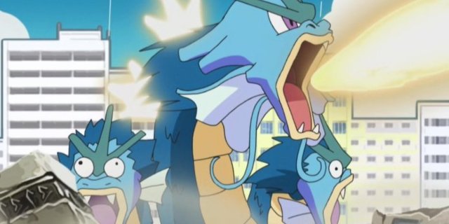 Este Gyarados ha sido cambiado a "Rey Gyaradorah" con dos cabezas de Gyarados muy divertidas y pegadas a su cuerpo. Está disparando una serie de rayos hiperactivos al Team Rocket que se escapa, y son vistos con un atuendo de Ultraman limpio. Junto con los uniformes de Jesse y James, Meowth se viste como la marquesina Kaiju de la Ultraman La franquicia, Garamon. Es un bonito huevo de Pascua que realmente tomó a los fans por sorpresa, y es solo otro ejemplo de Pokemon Anime divirtiéndose con cada aspecto de su presentación.