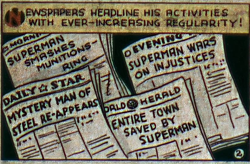 Panel desde Cómics de acción # 6 (1938) Con periódicos Daily Star