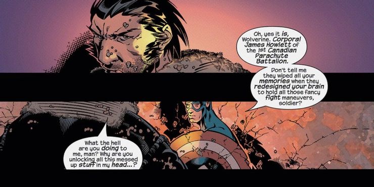 Tanto en la Tierra-616 como en la Tierra-1610 (universo principal y Universo Ultimate), Wolverine y el Capitán América lucharon en la Segunda Guerra Mundial, y en ambos universos lo hicieron antes de que Wolverine fuera sometido al Arma X. En la continuidad principal, Wolverine lentamente puede recordar su vida antes de Arma X, se entera de que su nombre es James Howlett y recuerda algunos de los eventos de su vida antes de su tortura de limpieza de mente. En Ultimate Universe, sin embargo, Wolverine nunca recupera esos recuerdos y los espacios en blanco en su vida lo vuelven loco. Entonces, cuando aparece el Capitán América, alguien que conoció a Wolverine antes de que perdiera la memoria, Cap usa eso a su favor cuando los dos se encuentran en lados opuestos de una batalla.