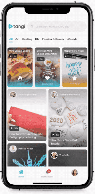 “Solo nos centramos en el contenido de bricolaje y creatividad”, explica el fundador de Tangi, Coco Mao. “El objetivo de nuestra plataforma es ayudar a las personas a aprender a crear, cocinar y crear con videos rápidos de un minuto. Diseñamos Tangi para que sea más fácil para los usuarios encontrar muchos videos instructivos de alta calidad ”, dice ella.
