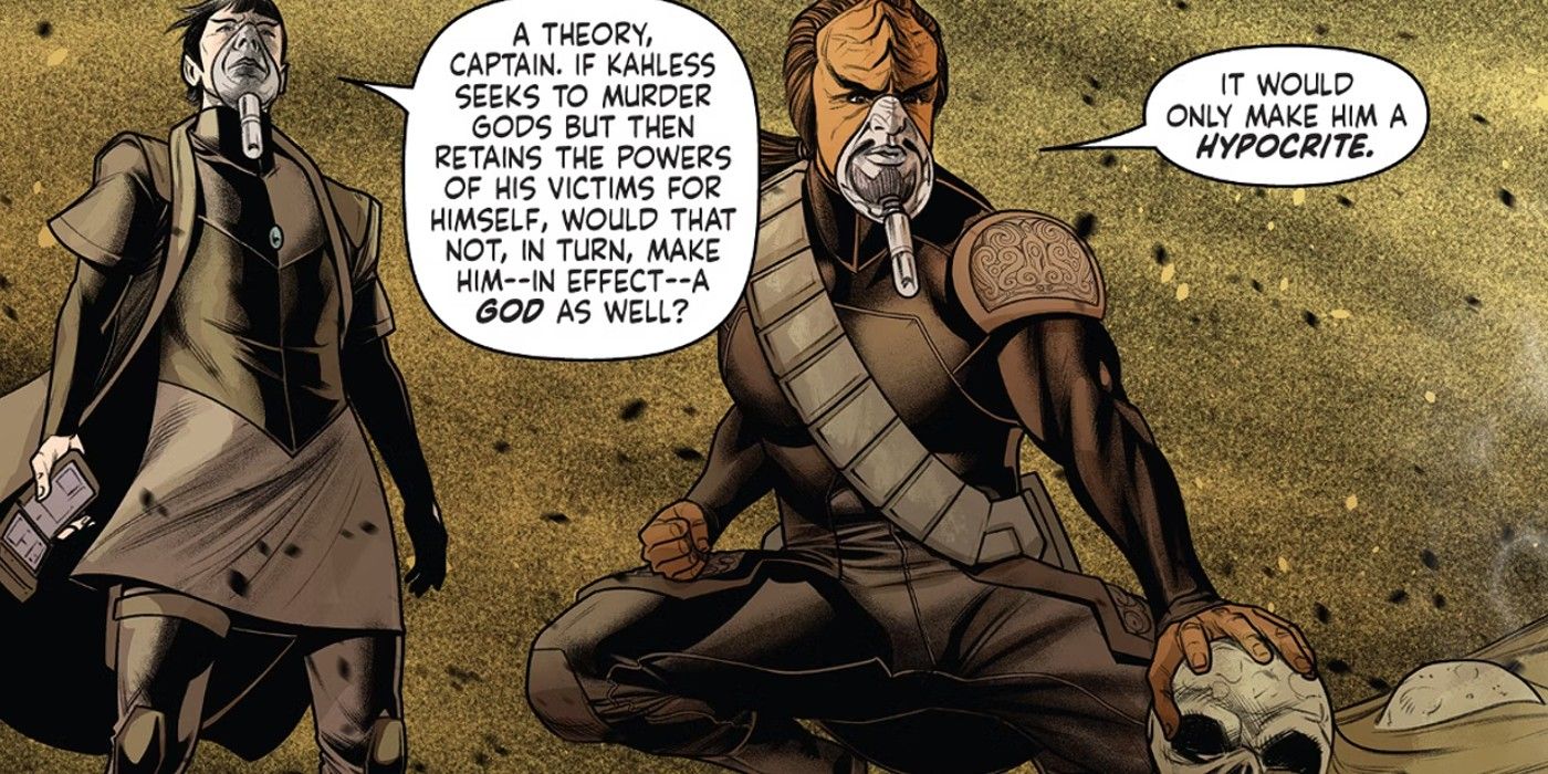 Spock le señala a Worf que Kahless, al tomar los poderes de los dioses para sí mismo, se está convirtiendo en un dios y, por lo tanto, en el máximo hipócrita. Tales debates filosóficos han estado en el corazón de la Guerra de Dios que actualmente envuelve al mundo. Star Trek universo. La evaluación de Spock de que esta nueva arruga en la campaña de terror de Kahless lo convierte en un hipócrita es acertada, y puede ser la clave para derrotar a Red Path. La sociedad klingon está estructurada en torno al concepto de honor; si se pudiera convencer a Kahless de que se ha deshonrado a sí mismo con esta cruzada, se le podría convencer de cancelarla, o al menos despojarlo de sus seguidores y protecciones diplomáticas.