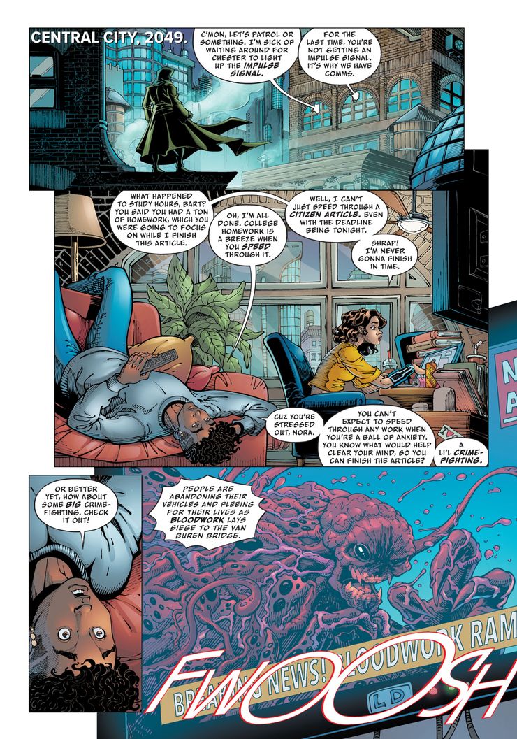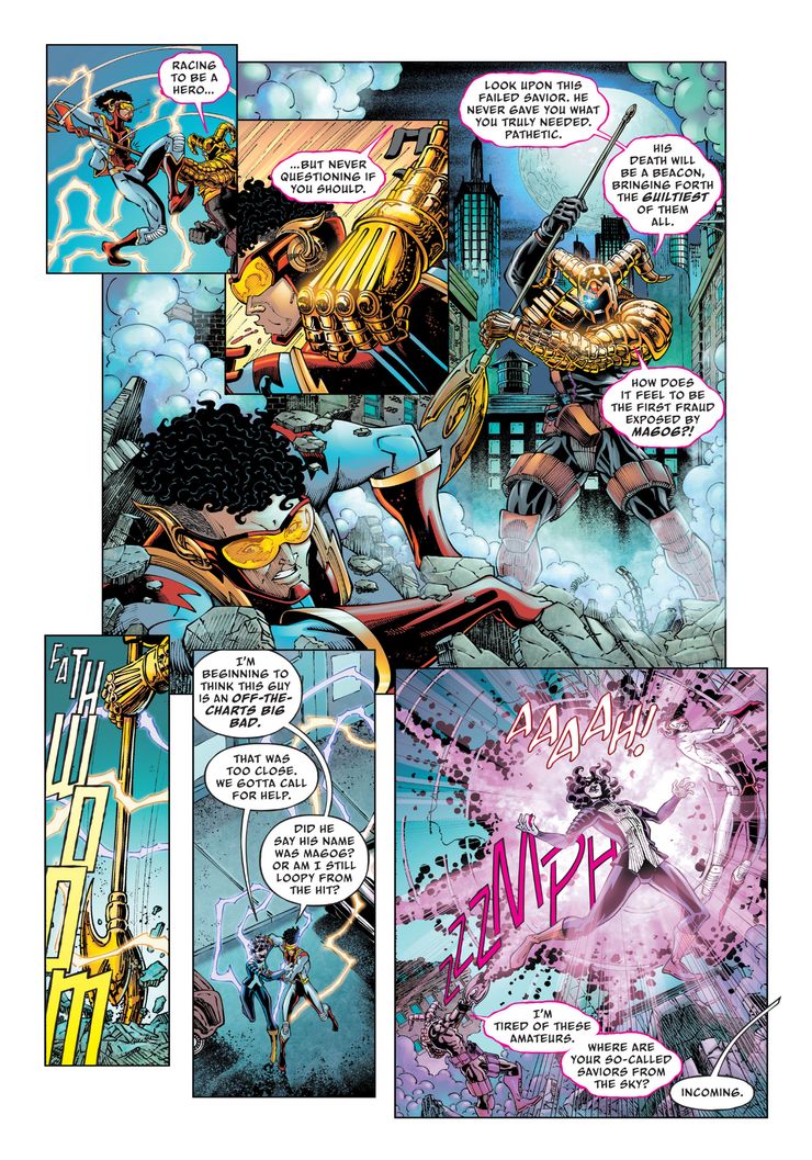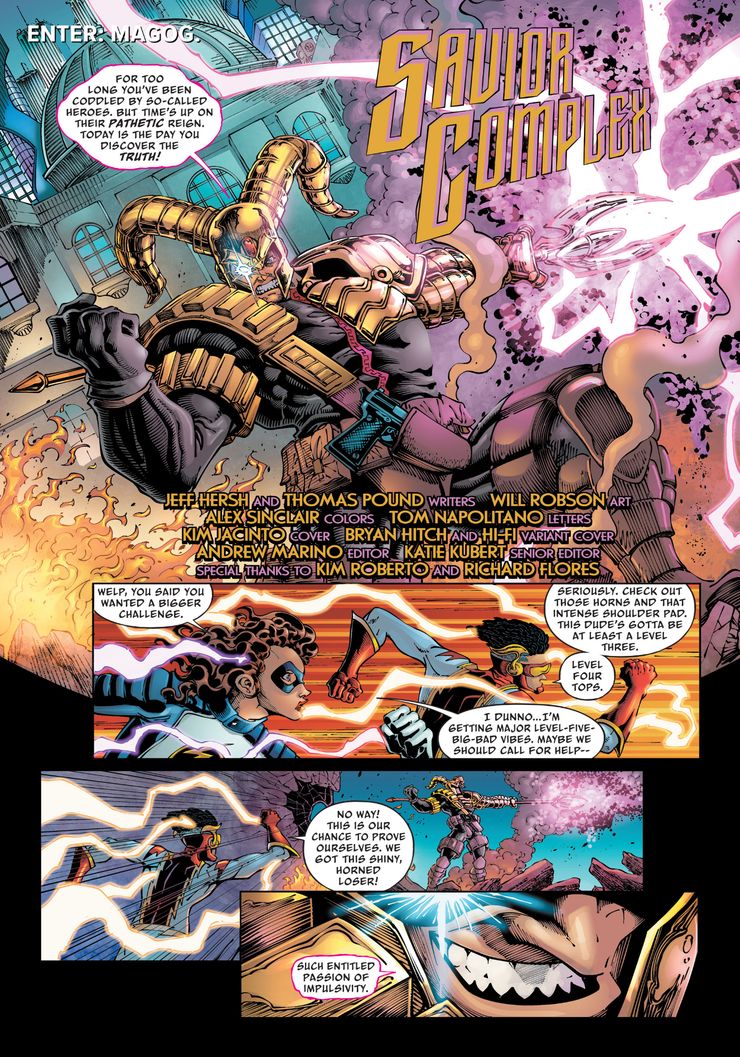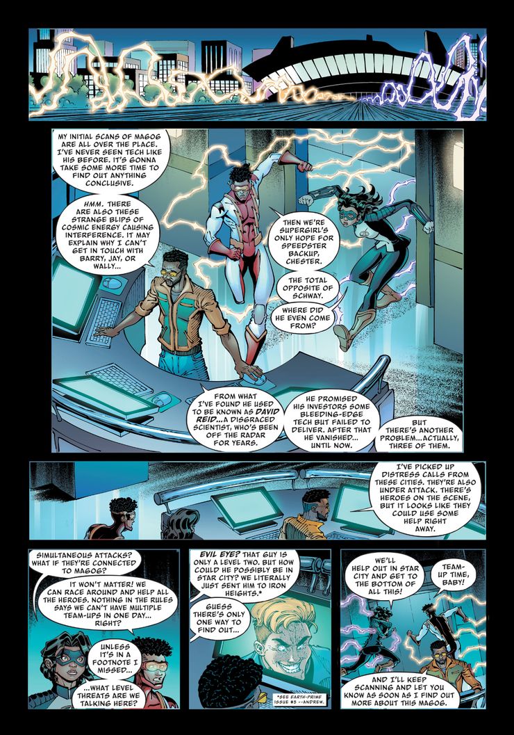 En una nueva vista previa de Earth-Prime: El Crepúsculo del Héroe #6 por Thomas Pound, Jeff Hersh, Will Robson, Alex Sinclair y Tom Napolitano, el plan final de Magog finalmente se revela, mientras libera su colección de villanos de todo el espacio y el tiempo. Bart y Nora Allen se enfrentan a Magog, pero rápidamente son superados por el villano que explota la energía. Impulse casi muere antes de que Supergirl llegue a la escena. Bart mira con asombro mientras ve la “amenaza de nivel Supergirl”.