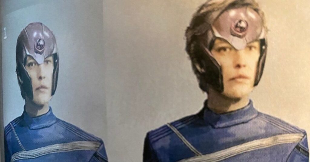 En el recién lanzado Crisis en Tierras Infinitas: Paragons Rising Deluxe Edition el cómic de tapa dura, el backmatter abarca toda la gama de páginas de guiones y dibujos a lápiz para el cómic y el arte conceptual del evento de televisión al que se vincula la historia. Y ya sea que se trate de múltiples looks abortados para Oliver Queen como The Specter, o un huevo de Pascua rápido de Michael Keaton en el traje que finalmente ocupó Kevin Conroy como Batman de Earth-99, hay algunas cosas interesantes allí. ¿Entre esas imágenes? Fotos de Harbinger (Audrey Marie Anderson) con su casco más preciso para los cómics, que nunca apareció en la adaptación televisiva.