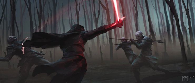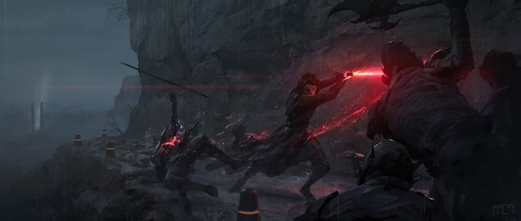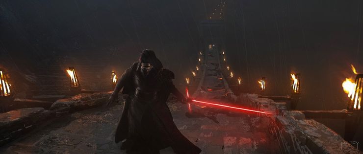 Arte conceptual temprano por uno de los Ascenso de SkywalkerLos artistas conceptuales de Jon McCoy muestran la búsqueda violenta de Kylo Ren del Wayfinder que lo llevaría a la guarida de Palpatine en el planeta tormentoso de Exegol. En las imágenes, se puede ver a Ren cortando una variedad de enemigos con su sable de luz. Una interpretación muestra a Ren parado en un altar sosteniendo lo que parece ser una versión temprana del Wayfinder con cuerpos recientemente asesinados detrás de él, frescos con marcas de quemaduras al rojo vivo. Echa un vistazo a algunos de los conceptos artísticos preliminares a continuación: