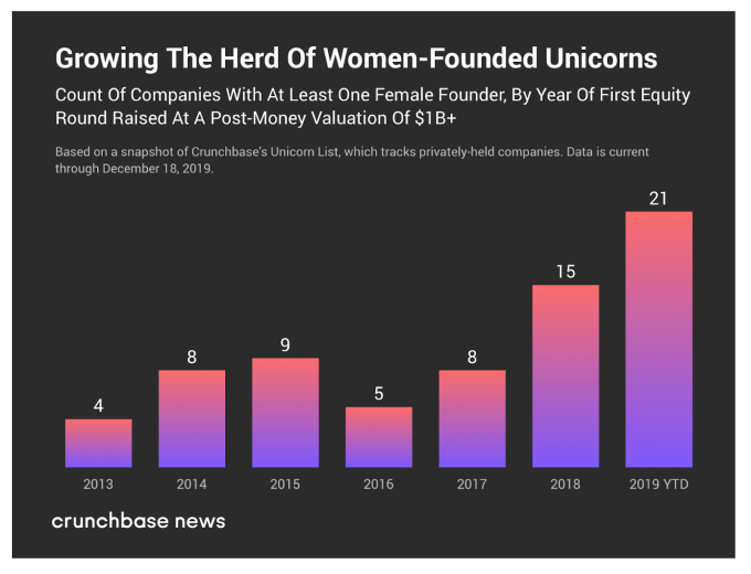 Solo mira las tendencias recientes. En 2019, nacieron más unicornios financiados por mujeres que nunca.5 5 Y las cosas solo están mejorando. (¡Te estoy mirando, ClassPass!)