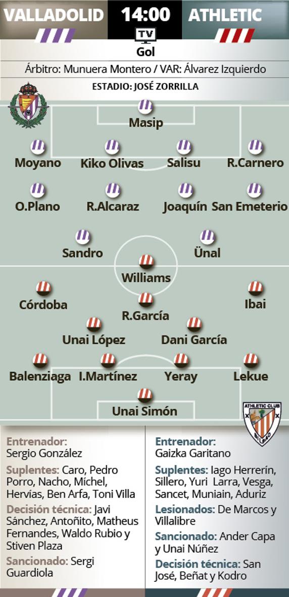 Las miras del Valladolid son muy distintas. El uso que pretende dar a los tres puntos de hoy está destinado a alejarse de la quema, ya que el 0-2 del Mallorca en Eibar ha elevado las pulsaciones a todos los integrantes de la parte baja de la tabla. El Athletic se enfrenta al equipo que más empata como local. Zorrilla registra siete tablas en Liga. Los blanquivioletas han ganado tres compromisos en su casa y han encajado dos derrotas. Solo el Sevilla y el Real Madrid han asaltado el feudo pucelano.