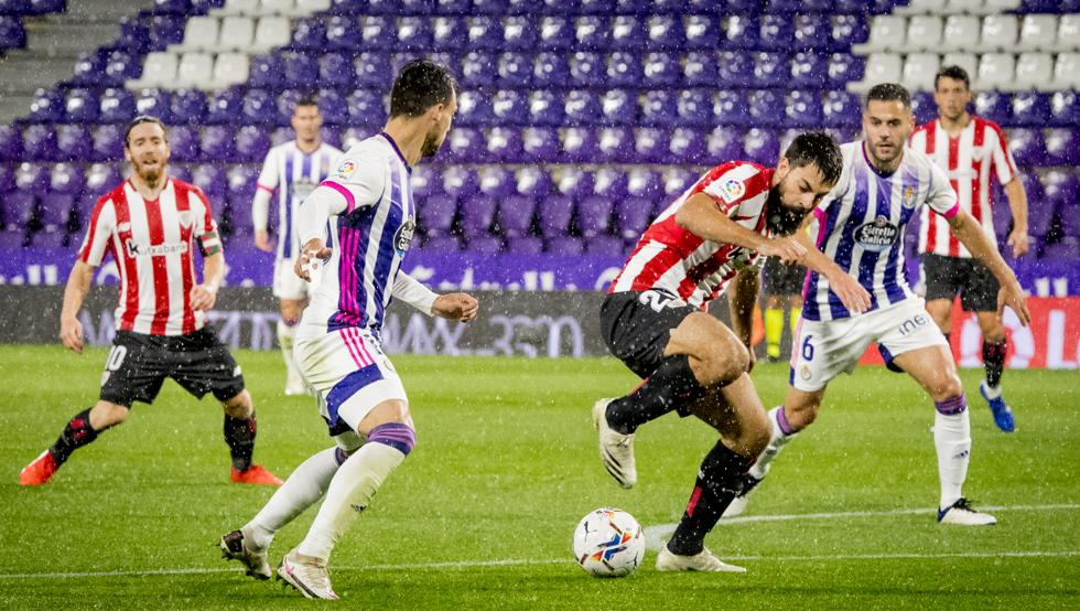 El ‘búfalo’, revulsivo habitual, dinamizó el ataque y el Athletic metió el miedo en el cuerpo a los pucelanos por dos veces. Primero con un cabezazo de Villalibre ante el que se lució Masip y después en un mano a mano de Williams, previo pase de Muniain, en el que intentó regatear al portero y acabó sin disparar.