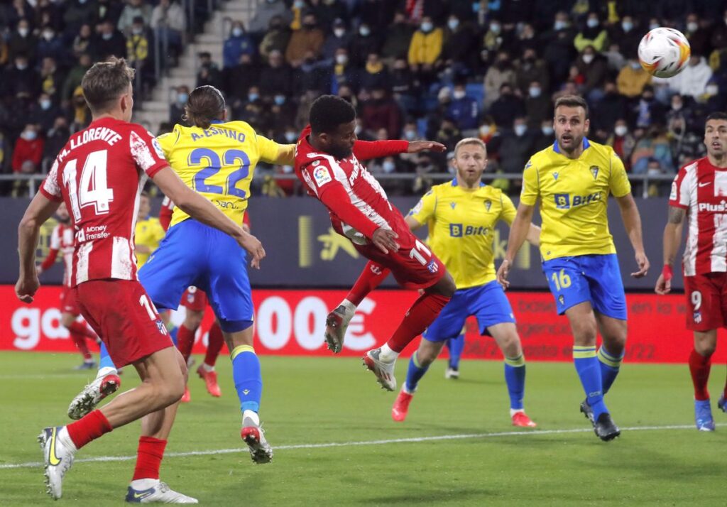No hubo cambio de guión en el segundo acto. El Cádiz siguió a su partido y el Atlético a tratar de desmontarlo. Lo hizo cuando por fin encontró el desequilibrio que no le aparecía. Se afilaron Llorente y Carrasco en las bandas y los rojiblancos provocaron una secuencia de cuatro saques de esquina que embotó al Cádiz. Una rosca del belga con caída al segundo palo la pescó Lemar con una suspensión en el aire y un escorzo de nueve.