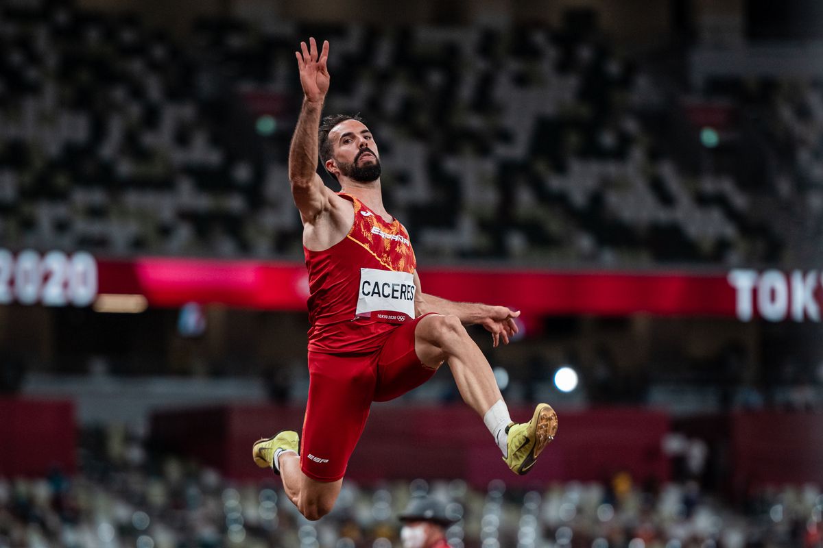 “Ya no sé saltar de forma natural”, dice Eusebio Cáceres, el atleta de Onil (Alicante), que llega a los 29 años a su primera final olímpica, y llega en la época en la que a las zapatillas de salto les ponen muelles, a lo que responde usando las mismas zapatillas que en su debut en los Juegos de Londres 2012. “Corro más que nunca, sí, pero esto no es una prueba de velocidad, y tengo que armar la técnica en cada salto, pensar lo que hago”. Y el subcampeón mundial júnior cuenta cómo una lesión hace tiempo en el pie de batida, el izquierdo, se hizo lesión en las diferentes partes de la pierna, trepó por la columna y acabó en la cabeza, donde todo acaba y todo empieza.