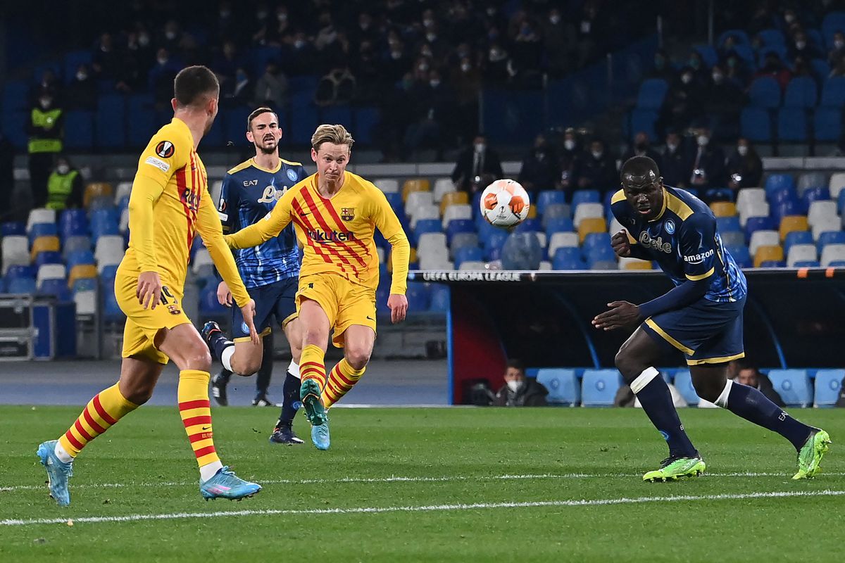 El acierto de los azulgrana fue tan pleno que al cuarto de hora ya ganaban por 0-2. La velocidad barcelonista sorprendió a los muchachos de Spalletti, habitualmente solventes en su área y por contra vulnerables a campo abierto, fuera de onda en el estadio Maradona. Apretaba muy arriba el Nápoles, exigido por el factor campo, y se estiraba con vértigo el Barcelona. La carrera de Adama se impuso en una transición montada por Aubameyang a la salida de un córner mal sacado por Insigne y rematada desde el lado derecho por Jordi Alba. El segundo gol llegó poco después en una larga conducción rubricada de forma espléndida con un tiro parabólico de Frenkie de Jong.