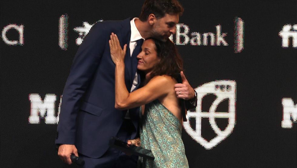 Palau, los dos jugadores más veteranos de las selecciones que competirán en Tokio por revalidar sus medallas de Río, unidos en el escenario.