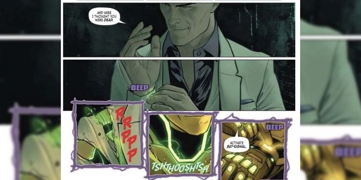 En hombre murciélago # 120 por Joshua Williamson, Jorge Molina, Mikel Janin y Clayton Cowles, Lex Luthor decide tomar el asunto en sus propias manos después de que el verdadero Batman continúa frustrando sus planes. Después de que Abyss irrumpe en su base, Luthor toca un dispositivo en su muñeca, activando la armadura debajo de su ropa. Al igual que Bruce Banner transformándose en Hulk, la armadura de Luthor se eleva desde debajo de su traje, rasgando su ropa en el proceso. Luthor luce una nueva armadura de Batman (originalmente construida para el héroe real) mientras le dice al villano que se muestre.
