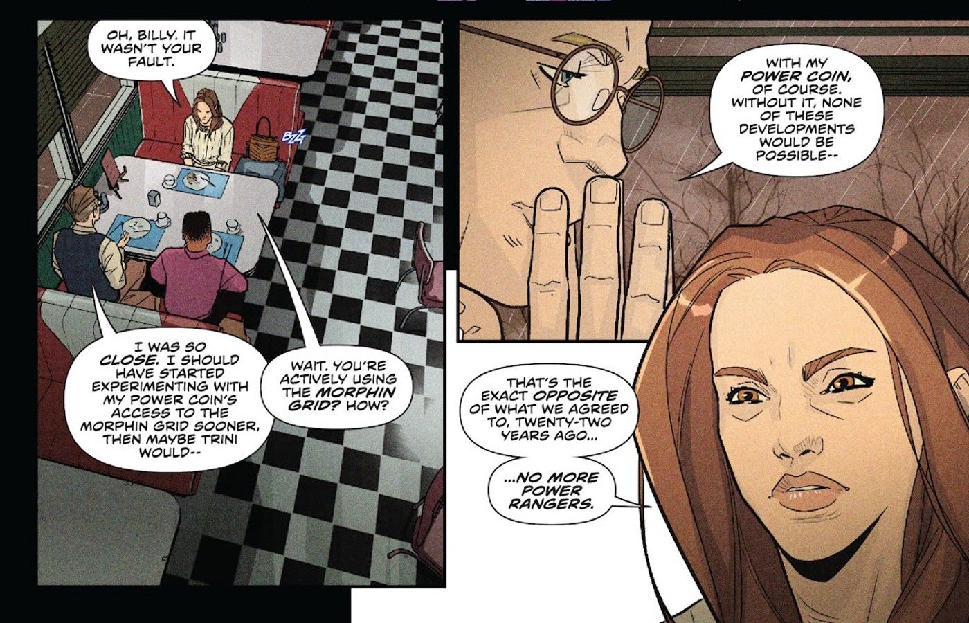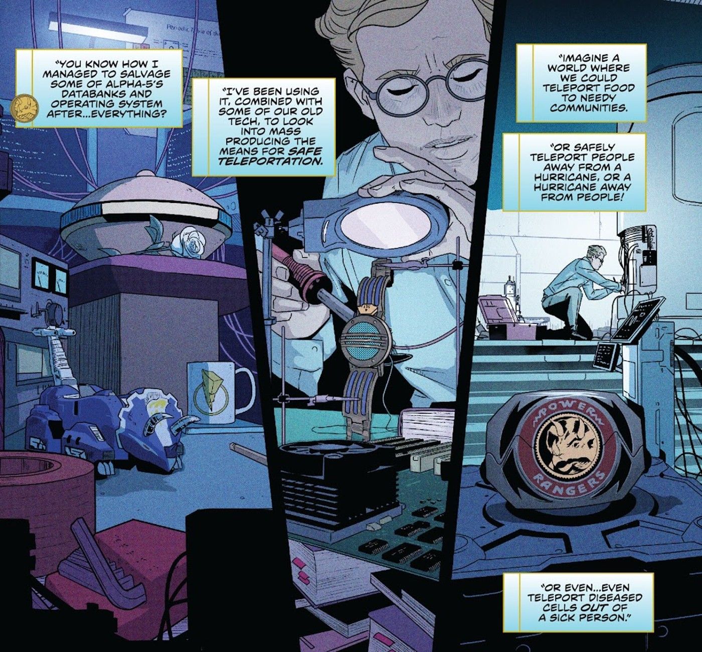 El Blue Ranger original continúa avanzando en la tecnología del equipo, incluso cuando sus días de héroe ya pasaron. Mighty Morphin Power Rangers: El regreso #1 por Amy Jo Johnson, Matt Hotson, Nico Leon, Francesco Segala, Gloria Martinelli y Ed Dukeshire. La serie analiza una línea de tiempo alternativa donde el equipo de Mighty Morphin no se disuelve hasta que están seguros de que el mal finalmente ha sido vencido.