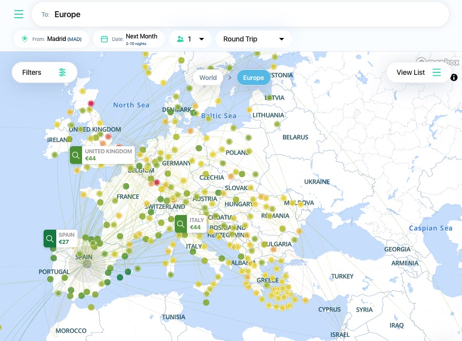 Una de las principales ventajas que ofrece este buscador es la multitud de filtros que se pueden introducir. Más allá de la fecha y la ciudad de salida, es posible acotar la búsqueda según la popularidad o el tiempo que va a hacer en la fecha introducida, por ejemplo.