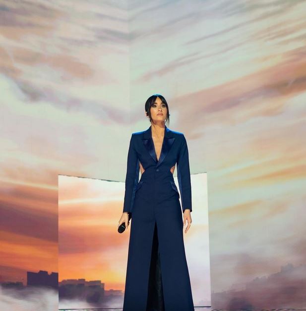 Su vestido de look de Versace fue comentado, si bien cuando cantó en la gala lució sobre el escenario un traje de Mans Concept Mens Wear, una acertada fusión entre lo femenino y masculino.