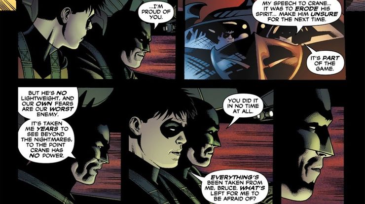 En el amado arco “Face the Face”, Batman y Robin luchan contra Scarecrow, cuya nueva toxina del miedo los obliga a luchar contra los avatares de sus mayores miedos. En el tema (de James Robinson, Leonard Kirk, Andy Clarke, John Kaliscz y Jared Fletcher) Tim es capaz de procesar rápidamente su miedo, derrotando a su oponente y recuperándose de los efectos de la toxina del villano. Una vez que Scarecrow ha sido encerrado, Batman elogia a Tim por desarrollar una habilidad que le tomó años dominar, no una inmunidad a los químicos de Scarecrow, pero la capacidad de procesar rápidamente su reacción, disipar las alucinaciones resultantes y acabar con el malo. .