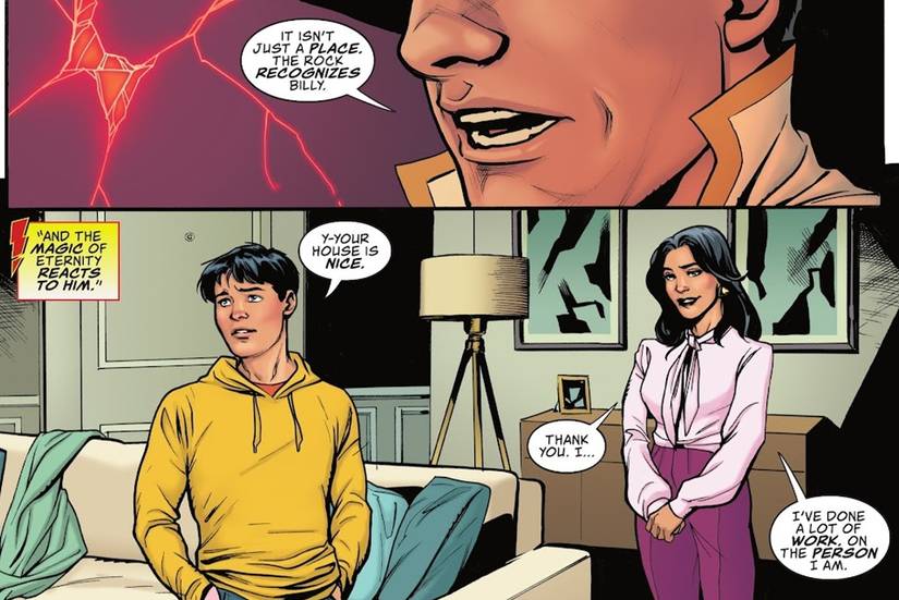 En el debut original de Shazam: 1940 Cómics genio #2 — Billy no es sólo un niño afortunado que se topa con la Roca de la Eternidad por casualidad. En cambio, el Mago lo ha estado observando y lo elige deliberadamente como su sucesor; Cuando Billy es conducido por primera vez a la Roca de la Eternidad, se le dice explícitamente que “todo ha sido arreglado.” Si bien el elemento del Mago buscando a alguien “puro de corazón” se agregaría más tarde, el cómic original recuerda a los lectores que Billy siempre estuvo destinado a ejercer el poder de Shazam, desde el principio y de forma muy deliberada..