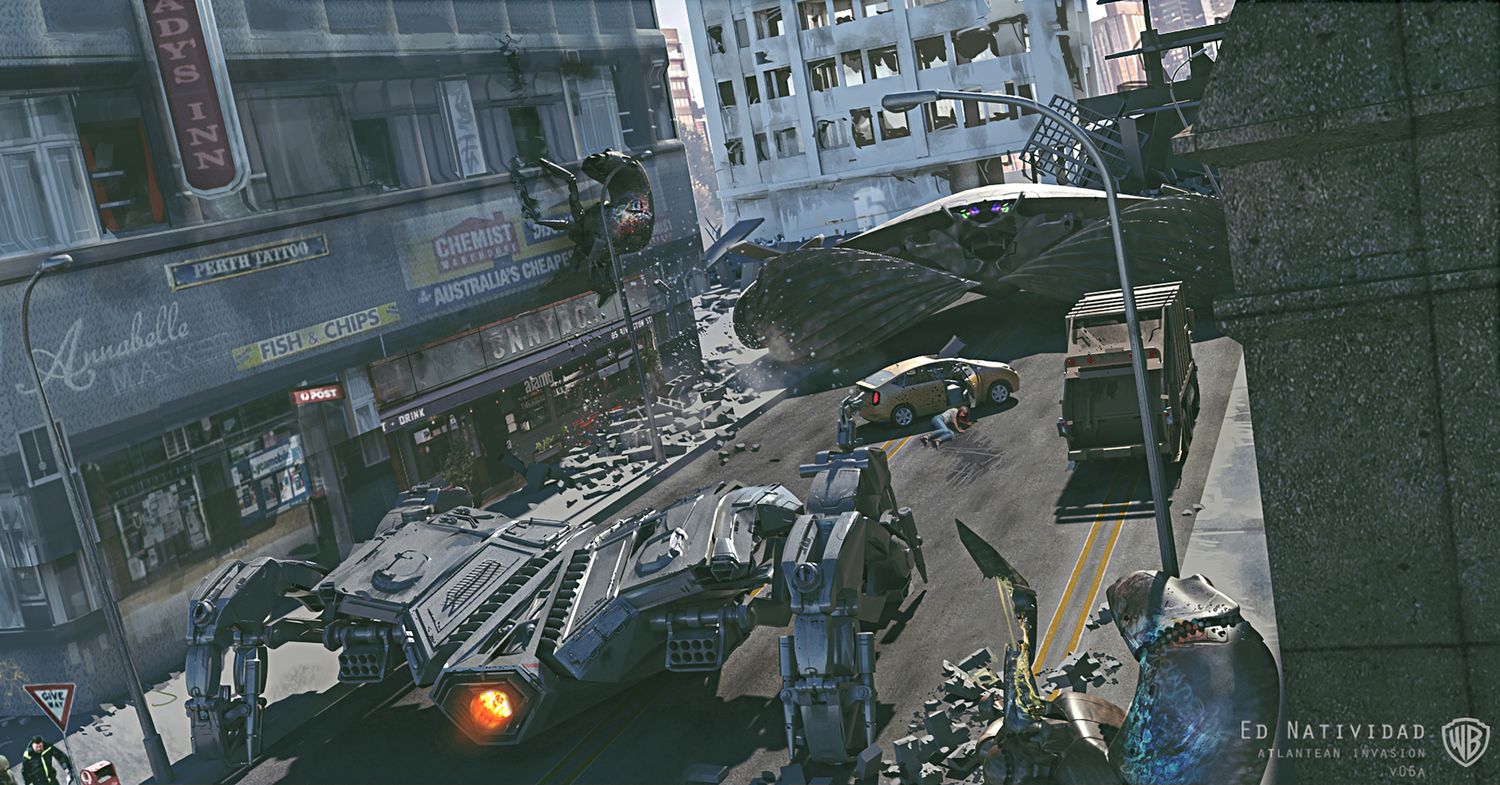 En un nuevo arte conceptual revelado por Ed Natividad, quien trabajó en Aquaman como diseñador conceptual de vehículos y es artista conceptual para Aquaman y el reino perdido, Batman de Affleck iba a aparecer junto a la Liga de la Justicia del DCEU durante la batalla contra Ocean Master. En un borrador anterior de AquamanOcean Master y los tres reinos habrían tenido una pelea dentro de una ciudad, la cual se puede ver a continuación: