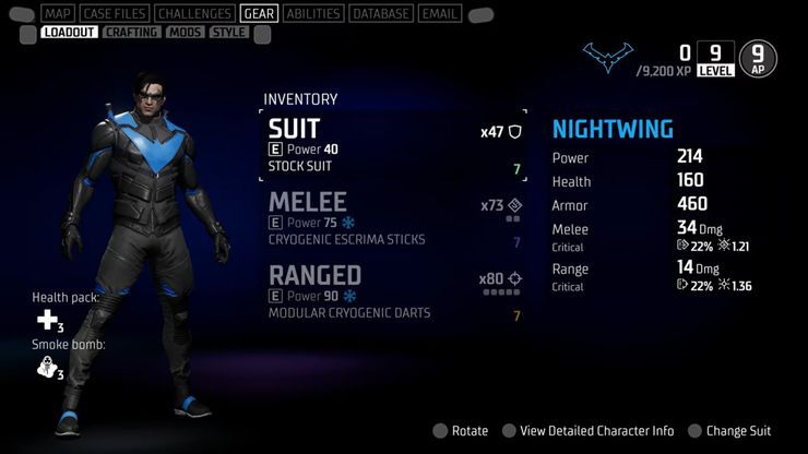 El banco de trabajo, que se usa para organizar y mejorar el equipo, se encuentra en el campanario. Los jugadores recolectarán planos y materiales de fabricación mientras patrullan Gotham y derrotan a los enemigos, y estos recursos se utilizan para crear y mejorar piezas específicas de equipo para cada héroe. Cada traje, arma cuerpo a cuerpo y arma a distancia tiene una apariencia diferente y estadísticas únicas, lo que permite a los jugadores crear una carga que coincida con su misión y hacer caballero de gotham Jugabilidad más variada. Diferentes armas pueden tener efectos elementales, como hielo o fuego, que pueden cambiar drásticamente su desempeño en combate. Algunos trajes también tienen espacio para Mod Chips, que pueden mejorar aún más las propiedades del juego. Antes de una misión particularmente difícil, los defensores de Gotham pueden regresar al Campanario y ajustar su equipo para adaptarse a la amenaza.