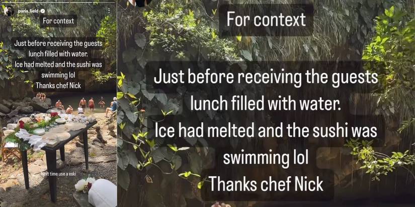 París publicó una foto del día y escribió: “Justo antes de recibir a los invitados, el almuerzo se llenó de agua”. El Debajo de la cubierta guiso agregado, “El hielo se había derretido y el sushi nadaba jajaja”.