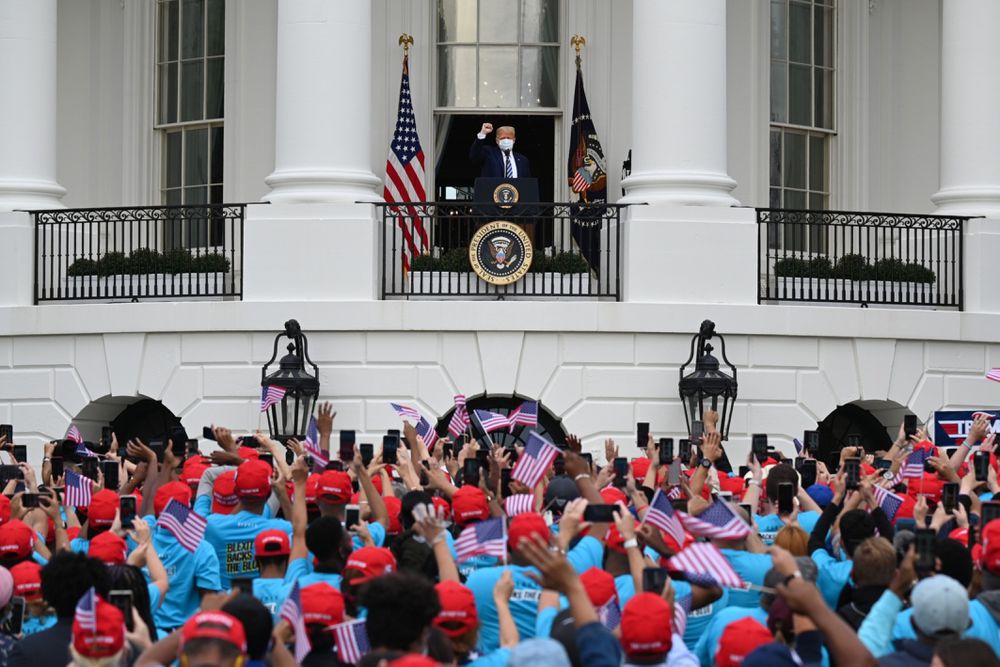 Ni el más fantasioso guionista habría podido imaginar el caos que se ha apoderado de la política estadounidense a tres semanas de las elecciones. En un, cuando menos, controvertido uso de la Casa Blanca para un acto de campaña, sin un nuevo parte médico que aclare su estado de salud, Donald Trump recibió este sábado a un grupo de seguidores, en su mayoría afroamericanos y latinos, precisamente los colectivos más golpeados por la pandemia, a los que se dirigió sin máscara desde un balcón. “A nadie daña más la guerra de la izquierda contra la policía que a los afroamericanos”, les dijo el presidente, adentrándose en el debate sobre la justicia racial desatado en el país tras la muerte a finales de mayo de George Floyd a manos de la policía.