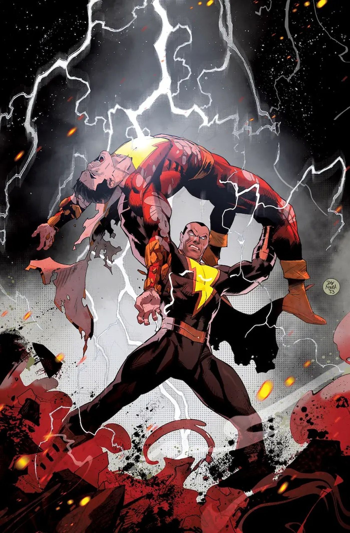 La solicitud de ¡Shazam! #7 revela que Black Adam regresa para enfrentarse a Billy Batson, con la intención de robar los poderes del Mago de una vez por todas. Si las portadas son una indicación, será la pelea del siglo. La portada estándar del artista de la serie Dan Mora muestra a Black Adam sosteniendo a Shazam (o el Capitán como se le conoce ahora) en alto mientras Adam se prepara para un devastador movimiento final. Una variante de Mike Deodato, Jr. muestra a los dos campeones luchando en un campo de rayos.