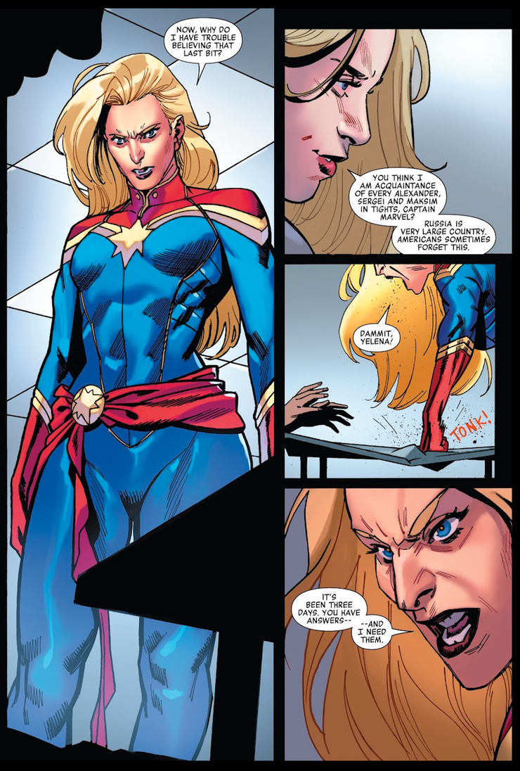 Aunque el Capitán Marvel en realidad terminó matando a Iron Man al final de Segunda Guerra Civil, ella todavía sostenía que él estaba equivocado y que tomaría las mismas decisiones una y otra vez. Ciertamente no es malvada de ninguna manera, pero es una de las Vengadores más autoritarias del equipo. Con Capitán Marvel Las tendencias pro-establecimiento son el rasgo más lejano de Capitan America, No es de extrañar que tenga dificultades para lidiar con Yelena Belova.