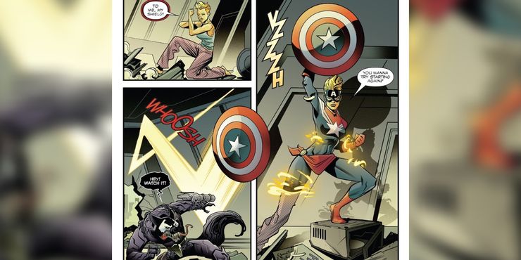 No se sabe que el Capitán Marvel use un escudo en la batalla, pero en una historia arrancada de Venomverse, ¡ella le da al Capitán América una actualización muy necesaria!