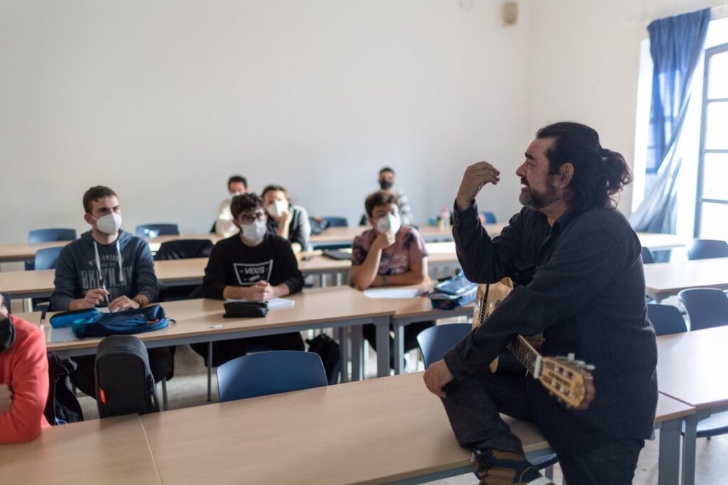 “Es que el 3×4 no me sale”, confiesa el alumno mientras detiene las cuerdas de la guitarra con sus manos. Miguel Ángel García Argüez, alias Chapa, escritor y reputado comparsista, le coge el instrumento y lo rasguea hasta que aparece el famoso ritmo que suena a Carnaval. Los 31 alumnos le siguen golpeteando sus mesas con los nudillos. Evolución de la estructura musical del pasodoble de la comparsa, reza en la proyección del aula 1.6 de la Facultad de Filosofía y Letras de Cádiz. La modalidad carnavalera capaz de crear mitos y legiones de fans hace pocas semanas que saltó de la entropía de la calle y los tablaos a la universidad gaditana, convertida en un estructurado curso-taller. La conquista es trascendental para la Cátedra del Carnaval de Cádiz, única de este tipo entre las universidades españolas, pero no será ni la última, ni la única.
