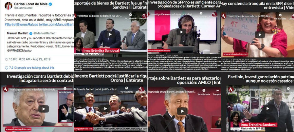 La información sobre los bienes inmobiliarios y empresariales de Bartlett, su pareja sentimental, Julia Abdala, y de los hijos de ambos, fue revelada en dos reportajes titulados “Bartlett Bienes Raíces” y “Bartlett S.A. de C.V.” de Arelí Quintero difundidos en el sitio web y programa radiofónico de Carlos Loret de Mola.