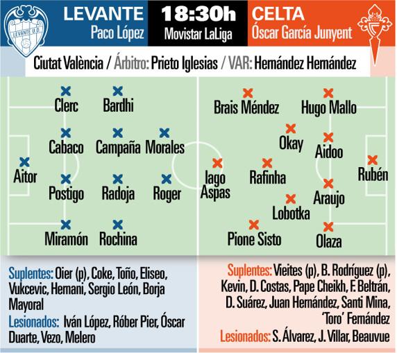 El Levante recibe este domingo al Celta de Vigo en un duelo crucial para ambos, ya que el equipo valenciano eliminaría a uno de sus rivales directos en caso de ganar, obtendría una ventaja de doce puntos y dejaría en una situación muy peligrosa al cuadro gallego que llega a Valencia tocado.
