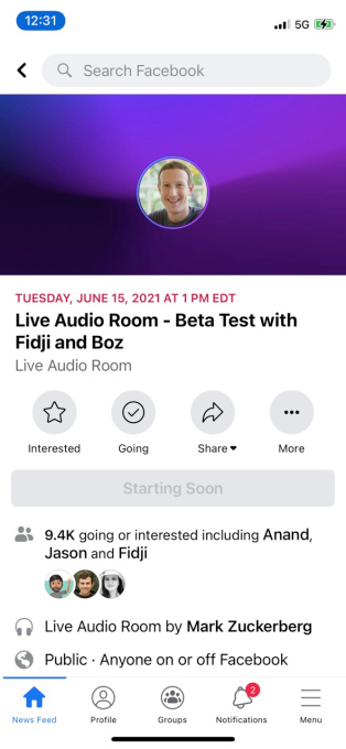 En abril, Facebook anunció una gran cantidad de nuevos productos de audio, incluido su clon Clubhouse, llamado Live Audio Rooms, que estará disponible tanto en Facebook como en Messenger. Desde mayo, Facebook ha estado probando públicamente la función de salas de audio en Taiwán con figuras públicas, pero hoy la compañía organizó su primera prueba pública de salas de audio en vivo en los EE. UU. El evento en sí fue organizado por el CEO de Facebook, Mark Zuckerberg, quien conversó con otros ejecutivos. y creadores.