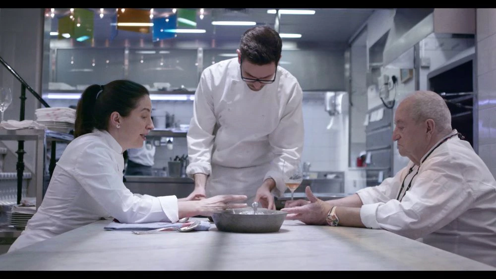 La mesa está en un lateral de la cocina. Allí, frente a frente, se sientan Juan Mari Arzak y su hija Elena. La cámara los recoge de perfil, con el fondo de fogones, carreras de cocineros y cruce de voces con instrucciones precisas. Pero ellos dos están abstraídos en su conversación. Y no son un progenitor y un vástago hablando sobre el trabajo y el fin de semana. Son dos cocineros, cada uno con sus gustos, buscando un punto de consenso sobre un plato. Y no va a ser fácil.