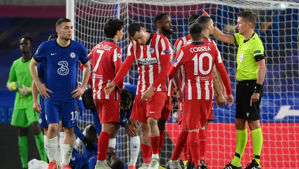 Mandaban los ingleses, pero no hacían sufrir a Oblak. Las sensaciones, eso sí, estaban teñidas de ‘blue’. Ganaban con facilidad el centro del campo Kanté y Kovacic. Pero el Atlético trataba de seguir presionando alto. En una de esas, Azpilicueta falló un control y dejó el balón para Carrasco, que fue agarrado por el navarro. El italiano Orsato no lo vio para tanto. El VAR tampoco. Antes, Suárez también había reclamado un empujón de Rudiger en el área.
