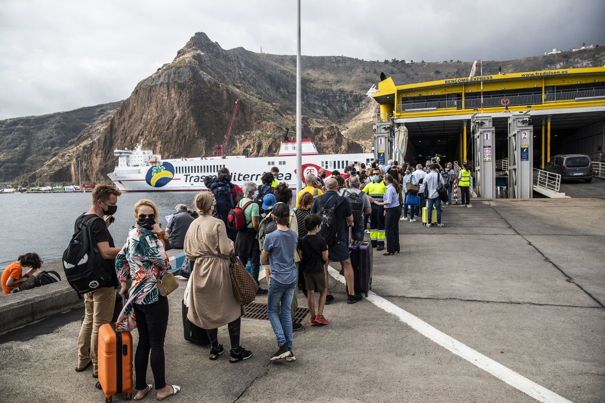 “Yo tengo que estar mañana en Madrid”, se desespera Sandra Sánchez en la terminal portuaria, mientras controla a su hijo de seis años con un ojo y busca desesperadamente dos billetes para volar. “Y no lo voy a conseguir. Ya no hay plazas”.