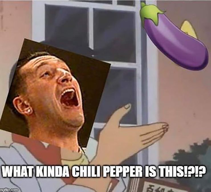 Este meme captura perfectamente eso, con el ganador de la temporada 1, Joey Sasso, mirando el emoji de berenjena que se usa típicamente con connotaciones sexuales y preguntando qué tipo de chile podría ser. Este meme también demuestra cómo algunos de los jugadores que juegan como otra persona quedan atrapados en sus mentiras por no entender algo que alguien de su edad podría entender. Más recientemente, el jugador de la temporada 4, Parker, fue criticado por no saber qué son las memorias y no estar familiarizado con Rod Stewart, a pesar de fingir ser un hombre de 50 años.