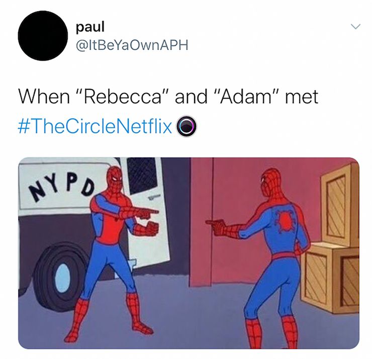 Tal como sugiere este meme, el bagre reconoce al bagre, y cada uno tenía sospechas de que el otro podría no haber sido quien decía ser. Curiosamente, sin embargo, los dos hombres heterosexuales continuaron coqueteando entre sí, Seaburn interpretando a Rebecca y Adam interpretando a un hombre soltero más joven y convencionalmente guapo. Estaban entre los mejores bagres en El círculo porque lograron mantenerse a salvo durante un tiempo a pesar de levantar sospechas, que es el nombre del juego.