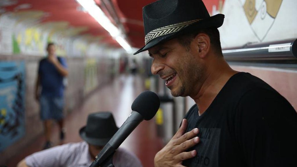 Entre el trajín de gente que circula apresurada por la estación de Pueyrredón del metro de Buenos Aires, resuena la voz de Yamil Ponce, un cirujano cardiovascular argentino que en su escaso tiempo libre cambia el bisturí por el micrófono y se convierte en cantante de tango callejero.