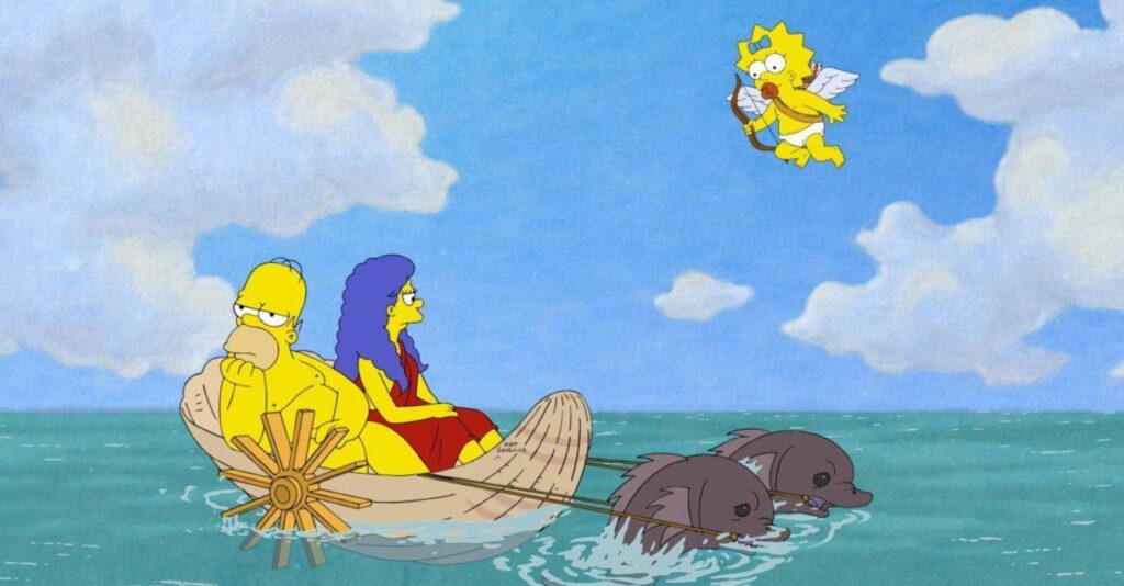 El primer clip de la novedad de esta semana Los Simpsons‘ha sido revelado y está enviando a Homer a un viaje sorprendente. En el breve video, que parece una realidad alternativa o un sueño, una versión de Cupido de Maggie vuela hacia abajo para ver una versión de Homer y Marge en un bote juntos. Antes de que ella pueda clavarle una de sus “flechas de Cupido”, un bebé Gerald alado vuela hacia abajo y cambia su carcaj por uno etiquetado como “flechas de la muerte”. Después de que Maggie voladora envía el rayo a Homer, su alma comienza a flotar hacia el cielo, solo para terminar en … bueno, el otro lugar. ¡Mira el clip a continuación!