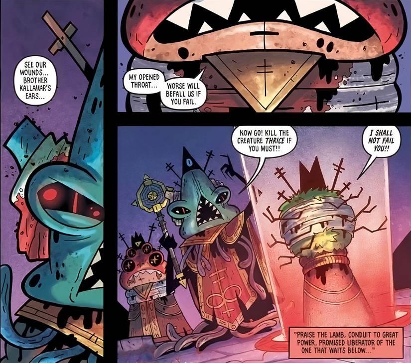 Culto al Cordero #2 – Escrito por Alex Paknadel; Arte por Troy Little; Color por Francesca Carotenuto y Nick Filardi; Letras por Crank! y Troy Little