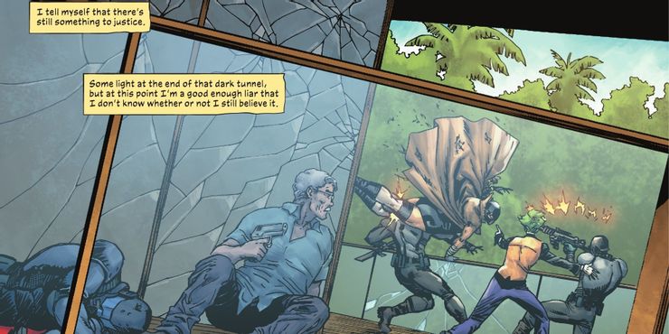 En esta nueva serie bufón, escrito por James Tynion IV con arte de Guillem March, el ahora ex comisionado James Gordon se ha embarcado en una misión a Belice a instancias de un misterioso operativo de la Corte de los Búhos conocido como Cressida. Gordon se encuentra en un tiroteo contra agentes liderados por Vengeance, hija de Bane, en el escondite de Joker. Durante el tiroteo, Gordon, encargado de matar a Joker por Cressida, lo encuentra en su punto de mira, pero duda. Recordando su tortura a manos del Joker (representado en la novela gráfica de 1985 La broma asesina), considera cómo solía creer en la lucha contra el crimen bajo el principio de justicia. Pero a medida que pasaba el tiempo, Gordon comenzó a darse cuenta de que se mentía conscientemente a sí mismo para actuar más como el “hipotético buen hombre”Él deseaba estarlo. Gradualmente, descubrió que ya no podía separar realmente si estaba luchando contra el crimen porque creía en el valor de la justicia para vencer el mal, o si se había convertido en algo que hizo por obligación y hábito.