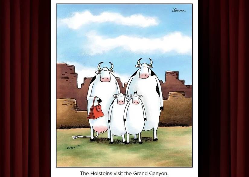 Publicado el 20 de noviembre de 1984, ‘Los Holstein visitan el Gran Cañón’ es una broma sencilla que lamentablemente se pierde en la ejecución. Vamos a explicar por qué todos no entendieron el sentido del chiste de Larson y por qué lo declaró el más incomprendido de todos los tiempos.pero primero mereces la oportunidad de resolverlo por ti mismo…