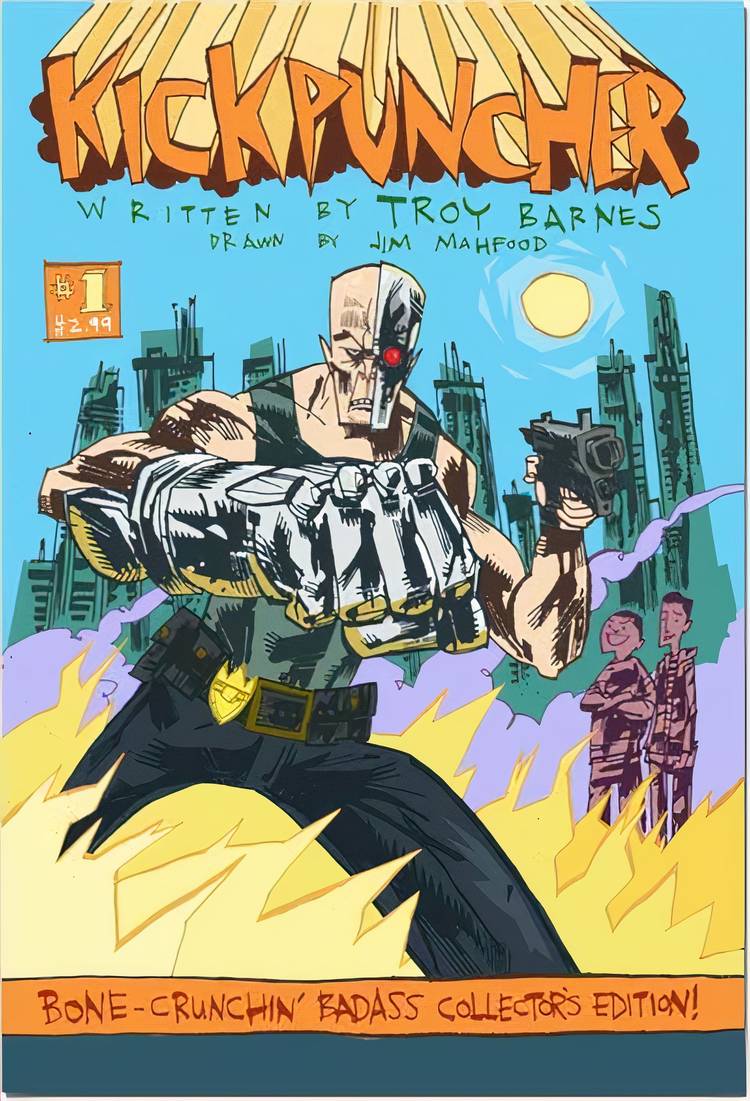 Troy explica en el ensayo inicial que conoció a “este tipo Jim Mahfood” en una clase de dibujo en Greendale y contrató los servicios del artista para dibujar su propio cómic para fans. En la actualidad, golpeador #1 fue escrito por el creador de la comunidad Dan Harmon y Jim Mahfoody vino empaquetado exclusivamente dentro del Comunidad Caja de la temporada 1.